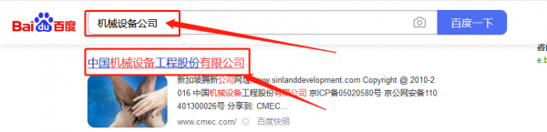中國機*設備工程股份有限公司百度快照排名案例欣賞