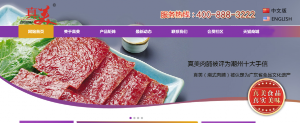 廣東真美食品股份有限公司選用我司企業的網站設計優化產品,其seo關鍵詞為食品,鎖定海外排名,覆蓋谷歌,雅虎,必應等海外主流搜索引擎,搶占海外市場, 網站打開速度快,用戶體驗好,風格多樣化,用戶互動性高,增強用戶黏著度廣東真美食品股份有限公司成立于1945,是經潮洲市市場監督管理局審核的有資質的公司,其統一社會信用代碼:91445103775063859W 。公司地址:潮州市潮安區江東鎮中橫路北美明溝南