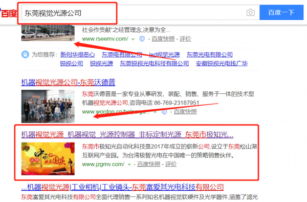我們公司與東莞市極知光自動化科技有限公司合作中,對這個公司所經營的視覺光源這個行業提供了搜索引擎優化推廣,與該公司的合作,更多的客戶讓我們公司為其提供搜索引擎優化推廣,通過每一次合作,我們公司不斷完善自己,同時希望合作伙伴在經營的路上越來越好。