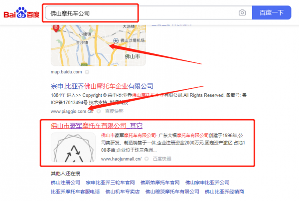 佛山市*軍摩托車有限公司選用我司企業摩托車的網站優化產品,其SEO關鍵詞有摩托車。通過SEO這樣一套基于搜索引擎的營銷思路,為網站提供生態式的自我營銷解決方案,不斷診斷網站SEO狀況優化網站,提高網站流量。佛山市*軍摩托車有限公司成立于1996年,是經佛山市市場監督管理局審核的有資質的公司,其統一社會信用代碼:914406053**193243P。公司地址:廣東省佛山市南海區獅山鎮國虹路23號綜合樓二層東區。