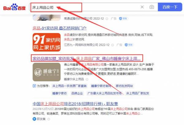 佛山市睡康*床上用品有限公司萬詞霸屏最快上詞效果展示