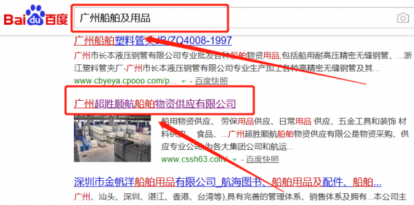 廣州超勝順航船舶物資供應有限公司與本司簽約百度快照排名協議