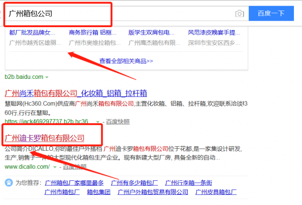 廣州迪卡羅箱包有限公司選用我司企業箱包的網站優化產品,其SEO關鍵詞有箱包。搶占百度、360搜索、搜狗等搜索引擎首頁自然排名(PC端 + 手機端),高客流量導入,SEO推廣效果更突出。廣州迪卡羅箱包有限公司成立于2018年,是經廣州市市場監督管理局審核的有資質的公司,其統一社會信用代碼:91440101MA5ATQMK8Q。公司地址:廣東省廣州市花都區花東鎮鳳凰村鳳湖路8號。