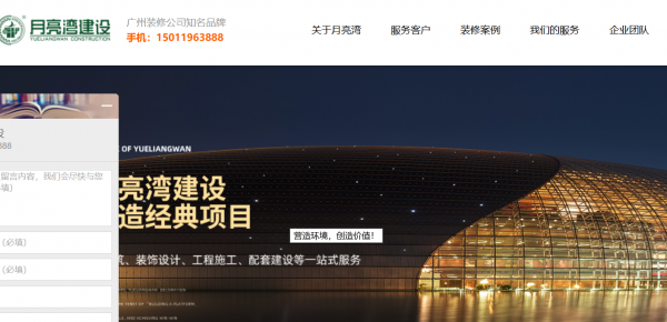 廣州市月亮灣裝飾設計有限公司現稱廣州市月亮灣建設工程有限公司(以下簡稱月亮灣裝飾或月亮灣建設)成立于2001年,是一家集建筑、裝飾設計、工程施工、配套建設等一站式服務的綜合性企業。公司擁有建筑裝飾工程設計專項甲級、建筑裝修裝飾工程專業承包壹級、消防設施工程專業承包貳級、電子與智能化工程專業承包貳級、建筑幕墻工程專業承包貳級、防水防腐保溫工程專業承包貳級、鋼結構工程專業承包叁級、建筑工程施工總承包叁級、環保工程專業承包叁級、建筑機電安裝工程專業承包叁級等資質,并通過ISO9001、ISO14001管理體系認證。