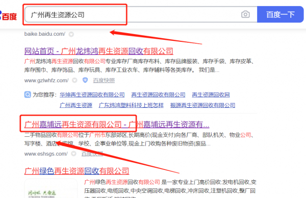 廣州*埔遠再生資源有限公司萬詞霸屏保證在首頁效果