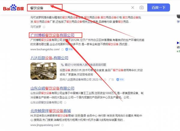 廣州博*餐飲設備有限公司百度關鍵詞排名到首頁按天扣費