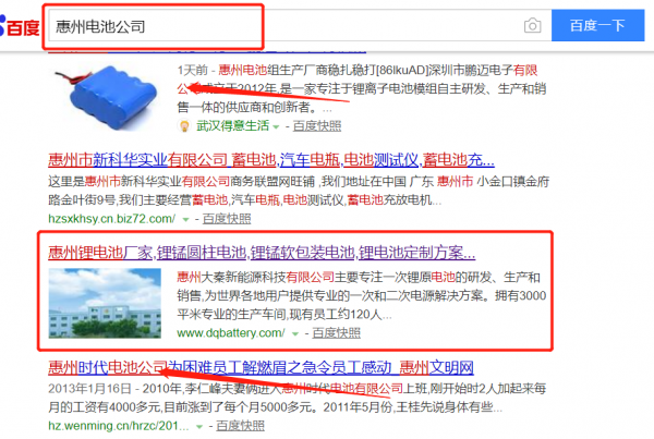 我們公司與惠州*秦新能源科技有限公司合作中,對這個公司所經營的電池這個行業提供了百度快照排名,與該公司的合作,更多的客戶讓我們公司為其提供百度快照排名,通過每一次合作,我們公司不斷完善自己,同時希望合作伙伴在經營的路上越來越好。