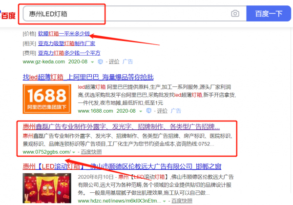惠州市*磊廣告有限公司選用我司企業(yè)LED燈箱的網(wǎng)站優(yōu)化產(chǎn)品,其SEO關(guān)鍵詞有LED燈箱。通過SEO做好排名后,一般可以保持半年以上的良好效果,大大節(jié)約成本,有效提升企業(yè)品牌知名度。按日收費,不限次數(shù)點擊,為企業(yè)呈現(xiàn)每一步優(yōu)化效果,有據(jù)可循,并承諾關(guān)鍵字上了百度首頁才扣費。惠州市*磊廣告有限公司成立于2013年,是經(jīng)惠州市市場監(jiān)督管理局審核的有資質(zhì)的公司,其統(tǒng)一社會信用代碼:914413000**240827J。公司地址:廣東省惠州市惠城區(qū)河南岸冷水坑樓下小組惠南大道72號一樓。