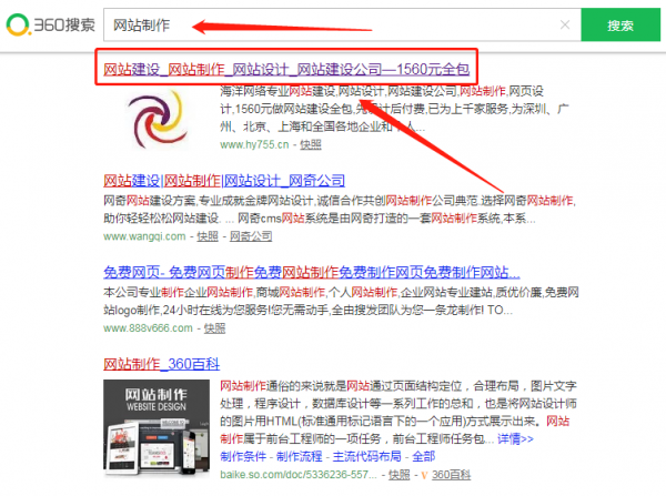 海洋網絡在360搜索引擎中優化關鍵詞處于第一位