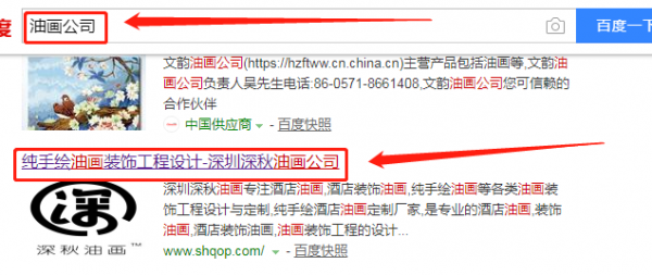 我們公司與深圳深秋油畫文化創(chuàng)意有限公司合作中,對這個公司所經(jīng)營的油畫這個行業(yè)提供了百度快照排名,與改公司的合作,更多的客戶讓我們公司為其提供百度快照排名,通過每一次合作,我們公司不斷完善自己,同時希望合作伙伴在經(jīng)營的路上越來越好。