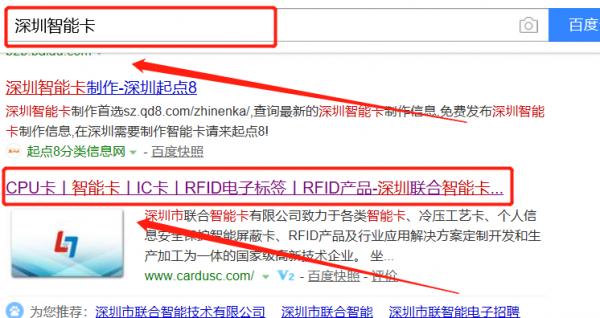 我們公司與深圳市聯合智能卡有限公司合作中,對這個公司所經營的智能卡這個行業提供了百度快照排名,與該公司的合作,更多的客戶讓我們公司為其提供百度快照排名,通過每一次合作,我們公司不斷完善自己,同時希望合作伙伴在經營的路上越來越好。