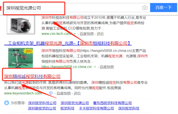 我們公司與深圳精視誠視覺科技有限公司合作中,對這個公司所經營的視覺光源這個行業提供了搜索引擎優化推廣,與該公司的合作,更多的客戶讓我們公司為其提供搜索引擎優化推廣,通過每一次合作,我們公司不斷完善自己,同時希望合作伙伴在經營的路上越來越好。