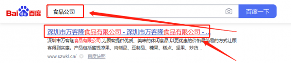 深圳市萬*隆食品有限公司搜索引擎推廣案例欣賞