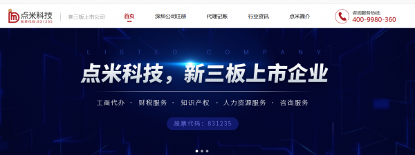 深圳市點*企業服務與咨詢有限公司是點米科技(股票代碼:831235)集團下子公司,為企業提供全領域綜合解決方案:咨詢服務、人力資源服務、財稅服務、工商服務、知識產權等企業服務。服務線下客戶近 5000 多家,線上客戶 60 多萬家,遍布銀行、互聯網、房地產、快遞物流、家居、通信、酒店、教育、培訓、服務等領域。