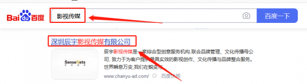深圳辰*影視傳媒有限公司搜索引擎優化推廣案例欣賞