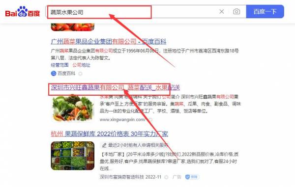 深圳市興*鑫蔬果有限公司網站優化最快上詞效果展示