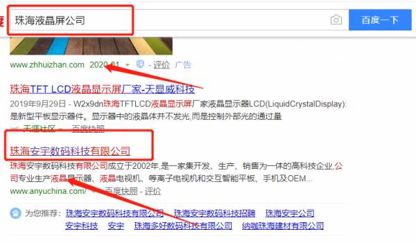珠海安宇數碼科技有限公司選用我司企業液晶屏的網站優化產品,其SEO關鍵詞有液晶屏。通過對搜索引擎目標關鍵詞優化,使目標網站的相關信息顯示在百度首頁,為企業挖掘更多的潛在客戶的同時帶來海量的商機。珠海安宇數碼科技有限公司成立于2002年,是經珠海市市場監督管理局審核的有資質的公司,其統一社會信用代碼:914404007408494131。公司地址:廣東省珠海市南水鎮南水工業園。