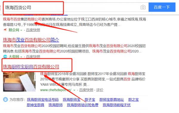我們公司與珠海廚師寶廚具百貨有限公司合作中,對這個公司所經營的百貨這個行業提供了百度快照排名,與該公司的合作,更多的客戶讓我們公司為其提供百度快照排名,通過每一次合作,我們公司不斷完善自己,同時希望合作伙伴在經營的路上越來越好。