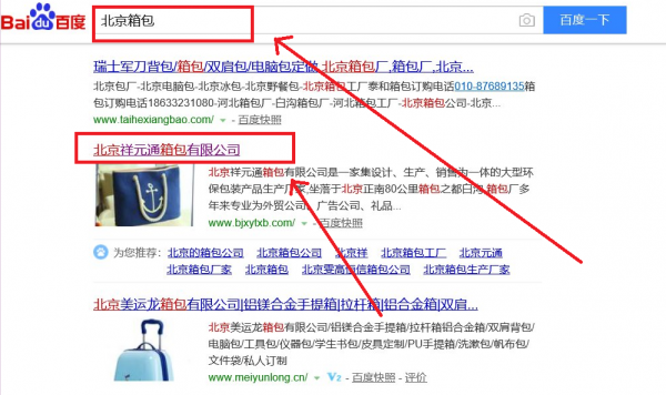 我們公司與北京祥元通箱包有限公司合作中,對這個公司所經營的箱包這個行業提供了搜索引擎優化推廣,同時讓我們積累到更多的經驗,與北京祥元通箱包有限公司這個公司建立了友好的合作伙伴的關系,也提高了海洋網絡在同行業的知名度,提高了箱包在同行業的知名度,發展越來越好。