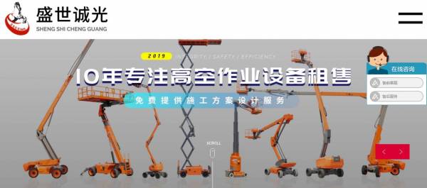 北京盛世誠(chéng)光機(jī)械設(shè)備租賃有限公司選用我司企業(yè)設(shè)備租賃行業(yè)的網(wǎng)站優(yōu)化產(chǎn)品,其SEO關(guān)鍵詞有 盛世誠(chéng)光,升降車.升降機(jī),升降平臺(tái),高空作業(yè)車,高空作業(yè)平臺(tái),登高車,舉高車,剪叉式升降機(jī)。其特點(diǎn)是用很合適的展示方式、展示效果、站點(diǎn)框架,把客戶及其用戶很關(guān)心的問(wèn)題突出表現(xiàn);并以簡(jiǎn)潔明朗的設(shè)計(jì)風(fēng)格,清晰展現(xiàn)公司水平實(shí)力,確保一秒抓住目標(biāo)用戶眼球,給用戶留下良好的第一印象。北京盛世誠(chéng)光機(jī)械設(shè)備租賃有限公司成立于2009年,是經(jīng)北京市市場(chǎng)監(jiān)督管理局審核的有資質(zhì)的公司,其統(tǒng)一社會(huì)信用代碼:911101156977355080 。公司地址:北京市大興區(qū)欣美街嘉悅廣場(chǎng)7號(hào)樓1510。