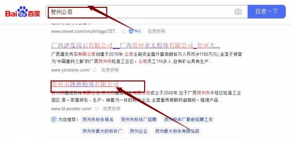 賀州市隆*粉體有限公司網站優化排名效果展示
