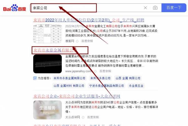 來賓市永*金屬有限公司關鍵詞推廣最快上詞效果展示