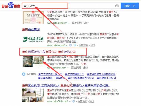 重慶德輝裝飾工程有限公司和我公司簽訂百度快照排名項(xiàng)目