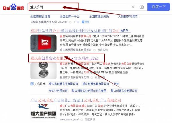 重慶市創*實業有限公司網站排名到首頁按天扣費