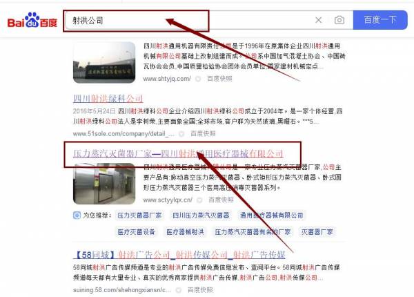 四川射洪通用*療器械有限公司百度關鍵詞排名效果展示