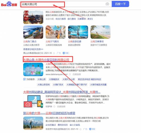 大理市*寶貝飲料有限公司網站優化最快上詞效果展示