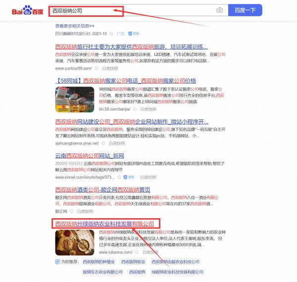 西雙版納州綠*納農業科技發展有限公司站優化保證在首頁效果