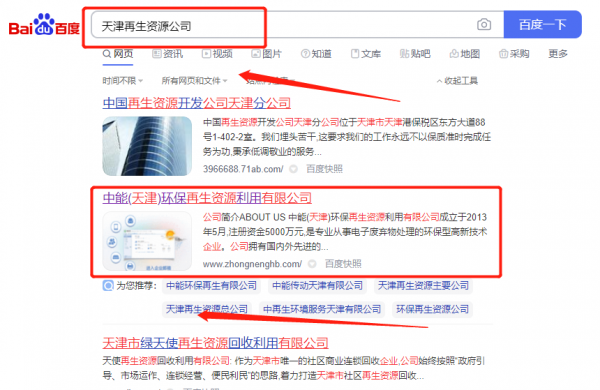 中*(天津)環(huán)保再生資源利用有限公司網(wǎng)站排名最快上詞效果展示