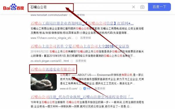 石嘴山市訊*實業(yè)有限公司百度排名效果展示
