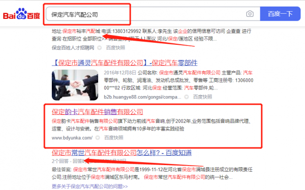 保定韻*汽車配件銷售有限公司萬詞霸屏保證在首頁效果