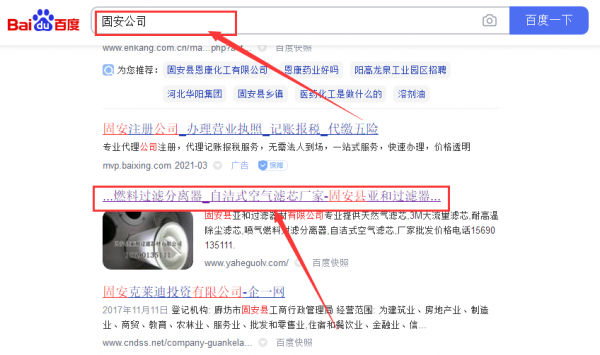固安縣*和過濾器材有限公司網站優化排名效果展示