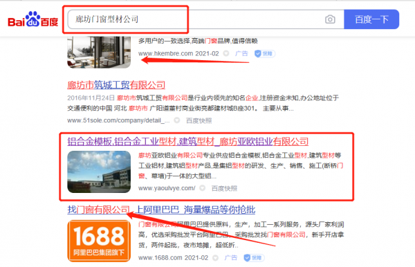 廊坊*歐鋁業有限公司選用我司企業門窗型材的網站優化產品,其SEO關鍵詞有門窗型材。搜索品牌詞,首頁至少霸占5條,通過營銷型網站、媒體文章、口碑等方式,達到全方位霸屏,全面展示企業實力。廊坊*歐鋁業有限公司成立于2009年,是經廊坊市市場監督管理局審核的有資質的公司,其統一社會信用代碼:911310236**288007C。公司地址:河北省廊坊市永清工業園區櫻花路。