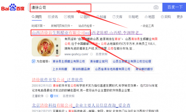 山西清徐縣生*醋業有限公司網絡推廣最快上詞效果展示