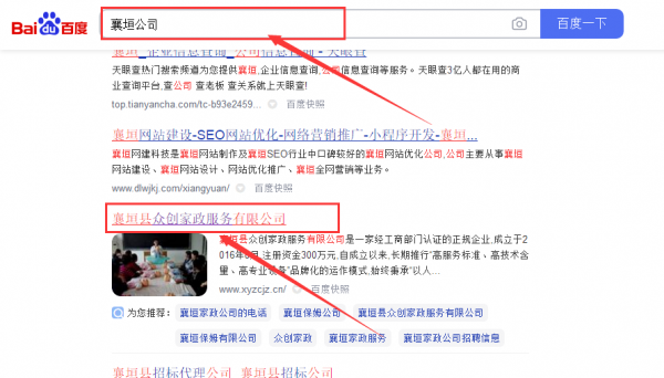 襄垣縣眾*家政服務有限公司百度關鍵詞排名最快上詞效果展示