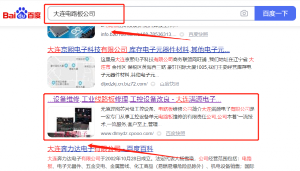大連滿*電子有限公司選用我司企業電路板的網站優化產品,其SEO關鍵詞有電路板。通過SEO做好排名后,一般可以保持半年以上的良好效果,大大節約成本,有效提升企業品牌知名度。按日收費,不限次數點擊,為企業呈現每一步優化效果,有據可循,并承諾關鍵字上了百度首頁才扣費。大連滿*電子有限公司成立于2007年,是經大連市市場監督管理局審核的有資質的公司,其統一社會信用代碼:9121028266**46553H。公司地址:遼寧省大連市普蘭店區金馬路4-2號。