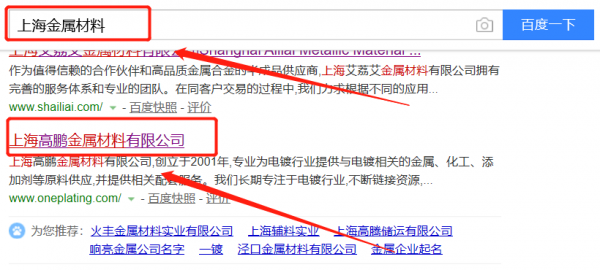 上海高鵬金屬材料有限公司選用我司企業(yè)金屬材料的網(wǎng)站優(yōu)化產(chǎn)品,其SEO關(guān)鍵詞有金屬材料。快速優(yōu)化系統(tǒng)火速推采用智能數(shù)據(jù)系統(tǒng),效果一目了然,包括關(guān)鍵詞排名,消費(fèi),余額等,并通過大量的數(shù)據(jù)分析優(yōu)化廣告效果。上海高鵬金屬材料有限公司成立于2001年,是經(jīng)上海市市場監(jiān)督管理局審核的有資質(zhì)的公司,其統(tǒng)一社會(huì)信用代碼:91310107703159464U。公司地址:上海市普陀區(qū)中山北路2299號(hào)175A室。