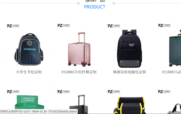 上海方振箱包制品有限公司選用我司企業的網站設計優化產品,其seo關鍵詞為箱包,鎖定海外排名,覆蓋谷歌,雅虎,必應等海外主流搜索引擎,搶占海外市場, 網站打開速度快,用戶體驗好,風格多樣化,用戶互動性高,增強用戶黏著度 上海方振箱包制品有限公司成立于2008年,是經上海市市場監督管理局審核的有資質的公司,其統一社會信用代碼:上海市嘉定工業區葉城路912號J4543室。公司地址:91310114674555790E