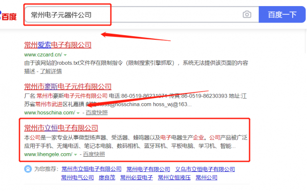 常州市*恒電子有限公司與我司簽下百度霸屏協議