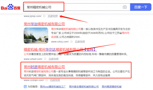 常州時*精密機械有限公司新站排名排名效果展示