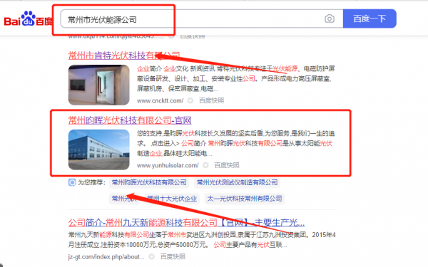 常州昀*光伏科技有限公司快速排名最快上詞效果展示