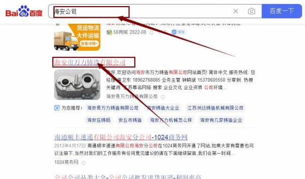海安市萬*鑄造有限公司網站優化最快上詞效果展示