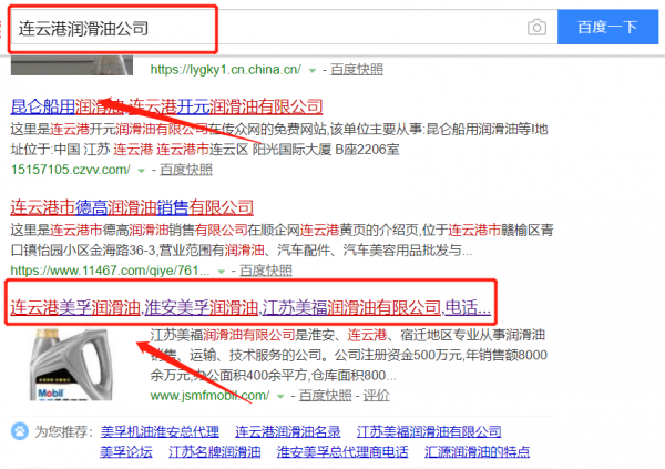 我們公司與江蘇美福潤滑油有限公司合作中,對這個公司所經營的潤滑油這個行業提供了關鍵詞搜索排名,與該公司的合作,更多的客戶讓我們公司為其提供關鍵詞搜索排名,通過每一次合作,我們公司不斷完善自己,同時希望合作伙伴在經營的路上越來越好。