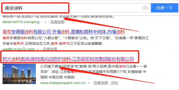 我們公司與江蘇冠軍科技集團股份有限公司合作中,對這個公司所經營的涂料這個行業提供了百度快照排名,與該公司的合作,更多的客戶讓我們公司為其提供百度快照排名,通過每一次合作,我們公司不斷完善自己,同時希望合作伙伴在經營的路上越來越好。