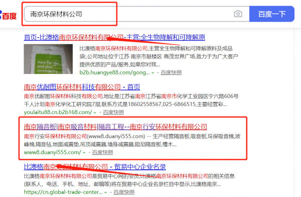南京*安環保材料有限公司與與本司簽約百度快照排名協議
