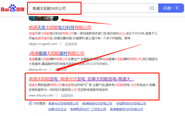 我們公司與南通*昌新能源有限公司合作中,對這個公司所經(jīng)營的太陽能光伏這個行業(yè)提供了SEO,與該公司的合作,更多的客戶讓我們公司為其提供快速排名,通過每一次合作,我們公司不斷完善自己,同時希望合作伙伴在經(jīng)營的路上越來越好。