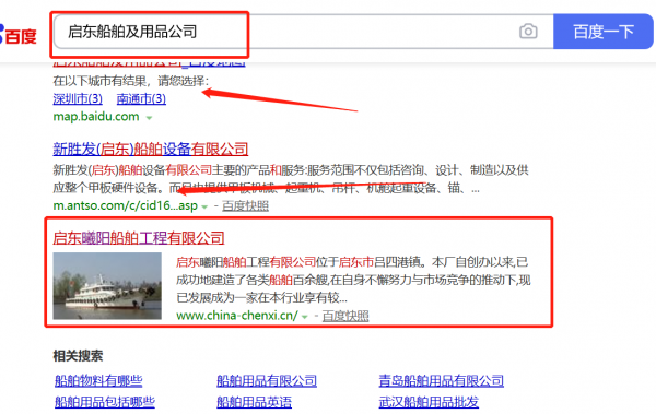 啟東*曦船舶修造有限公司選用我司企業(yè)船舶及用品的網(wǎng)站優(yōu)化產(chǎn)品,其SEO關(guān)鍵詞有船舶及用品。通過(guò)對(duì)搜索引擎目標(biāo)關(guān)鍵詞優(yōu)化,使目標(biāo)網(wǎng)站的相關(guān)信息顯示在百度首頁(yè),為企業(yè)挖掘更多的潛在客戶的同時(shí)帶來(lái)海量的商機(jī)。啟東*曦船舶修造有限公司成立于2016年,是經(jīng)啟東市市場(chǎng)監(jiān)督管理局審核的有資質(zhì)的公司,其統(tǒng)一社會(huì)信用代碼:91320681**1MLAQB62。公司地址:江蘇省啟東市呂四港鎮(zhèn)鶴東菜場(chǎng)1號(hào)門(mén)面。